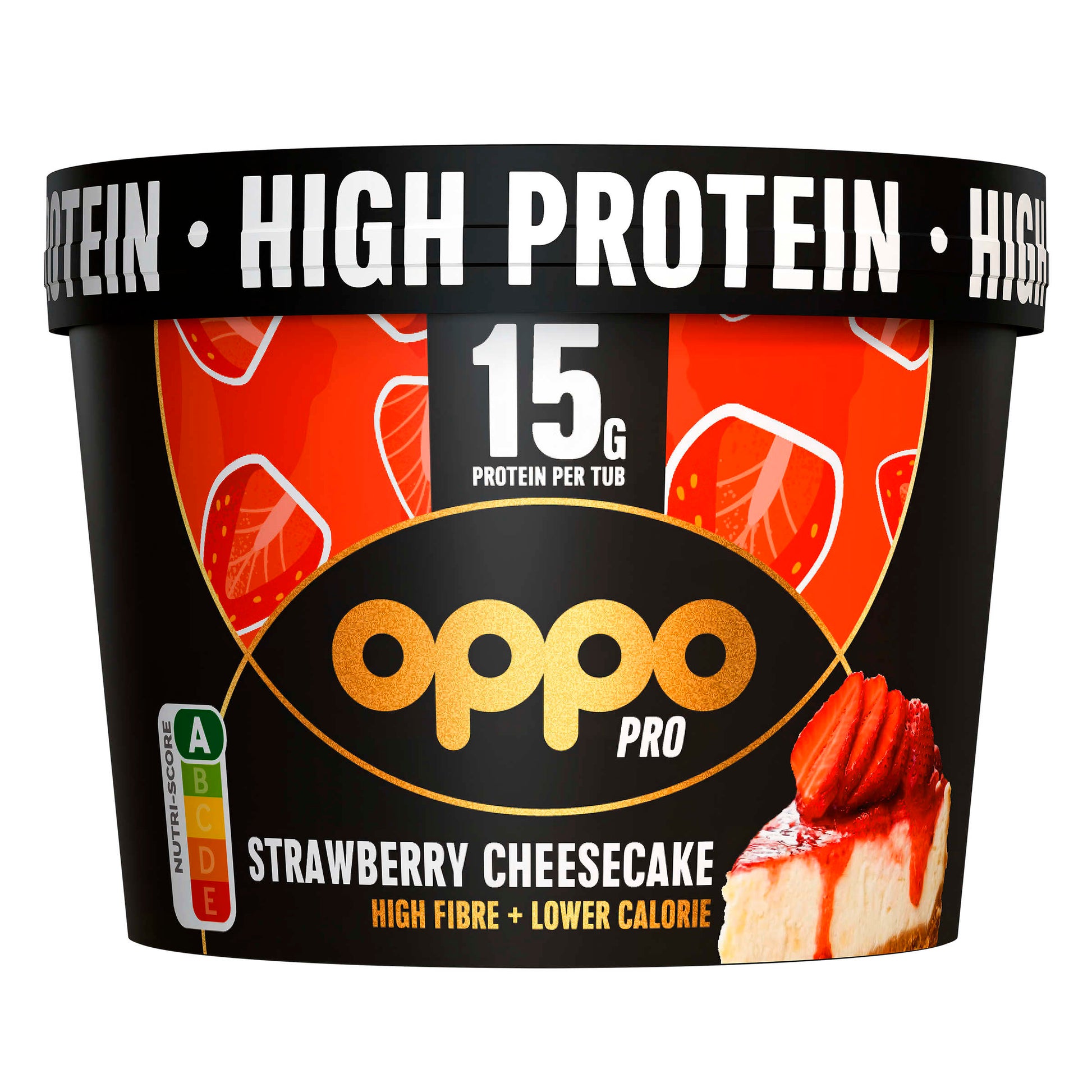 Finally, high protein meets indulgence. Introducing our Oppo Pro range. Packed with 15g of protein in a convenient single serve tub, not only is our new Strawberry Cheesecake ice cream deliciously creamy, it's high in fibre and lower in calories too. This rich strawberry cheesecake flavoured ice cream is made with fresh whole milk and cream, churned with generous amounts of crunchy biscuit pieces and rippled with a sweet strawberry swirl throughout. Check out our other Oppo Pro flavour, Chocolate Brownie.